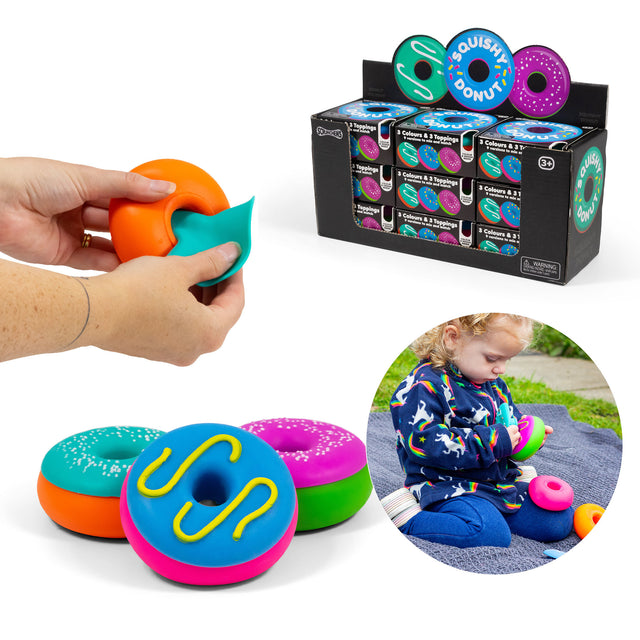 Introducing the Scrunchems Donut Squishy – a delightful food-themed item! The squishy ring is entirely squeezable, and the icing, which can be taken off, is incredibly tactile and stretchy. This allows for the creation of new combinations and adds to their collectability.